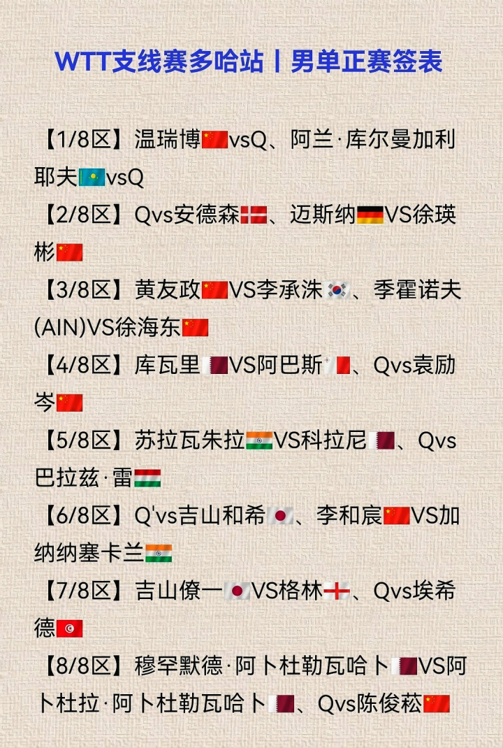多哈支线赛正赛签表发布,温瑞博主要任务:PK队友!