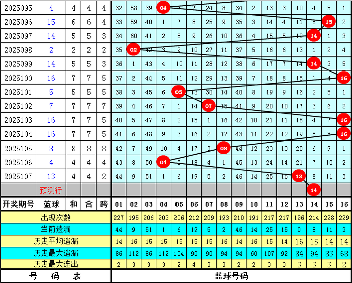 蓝球分析:蓝球上期开出大号13,最近10期蓝球号码大小比为5:5,大小蓝球走势相当,本期蓝球关注大号,推荐号码14。