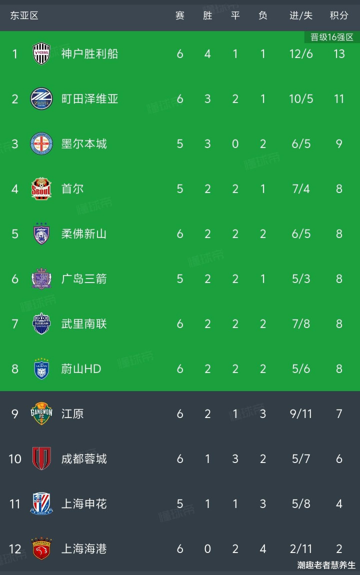 积分榜的形势同样不容乐观:成都蓉城积6分暂列第十,上海海港仅积2分小组垫底,上海申花则以4分位列其间。根据亚冠精英联赛赛制,只有跻身东亚区前八才能继续征程。尽管理论上的出线希望尚存,但三支球队都已将自身置于悬崖边缘。